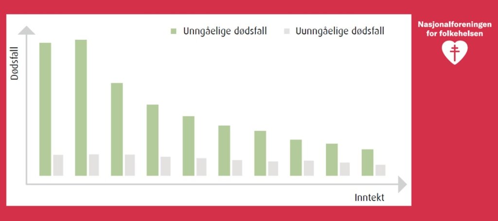 I høst bestilte Nasjonalforeningen for folkehelsen en analyse av sosial ulikhet i dødelighet fra et forskningsmiljø ved OsloMet. Spørsmålet vi stilte var om det er forskjeller i størrelsen på de sosiale ulikhetene i for tidlig død av sykdommer som kan behandles eller forebygges (unngåelig død) i forhold til de sykdommene vi dør av hvor vi ennå ikke har mye kunnskap om forebygging eller behandling (uunngåelig død). Dersom ulikhetene først og fremst viser seg i dødelighet av sykdommer vi kan forebygge eller behandle, er det ikke bare et tegn på at ulikheten er samfunnsskapt. Det betyr også at vi som samfunn kan gjøre noe med ulikhetene.