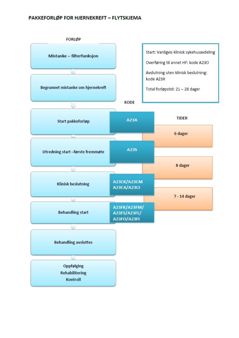 Høygradige hjernesvulster grad III og IV utgjør i Norge rundt 250 tilfeller per år og lavgradige diffuse gliomer grad II rundt 60- 70 tilfeller per år. Høygradige hjernesvulster har dårligst prognose. Initial utredning ved mistanke og begrunnet mistanke om hjernesvulst er lik for alle pasienter, også for dem som har godartede svulster. Det videre forløpet når diagnose er stilt vil være ulikt for pasienter med høygradige, diffuse lavgradige og godartede svulster. Angitte forløpstider i første del av dette pakkeforløpet, frem til man har funnet ut om og eventuelt hvilken type svulst det dreier seg om, gjelder alle pasienter med begrunnet mistanke om hjernesvulst og uavklart type svulst. Den siste delen omfatter pasienter med høygradige hjernesvulster. Noen pasienter med diffuse lavgradige eller godartede hjernesvulster kan ha symptomer og svulstutbredelse som tilsier at også disse bør utredes og behandles innenfor tidene angitt i dette pakkeforløpet. Mange lavgradige svulster vil utvikle seg til å bli høygradige og pasienter med lavgradige diffuse gliomer skal derfor ha et livslangt kontrollopplegg. På det tidspunkt man eventuelt påviser utvikling til en høygradig svulst skal pasienten inn i Pakkeforløp for hjernekreft.