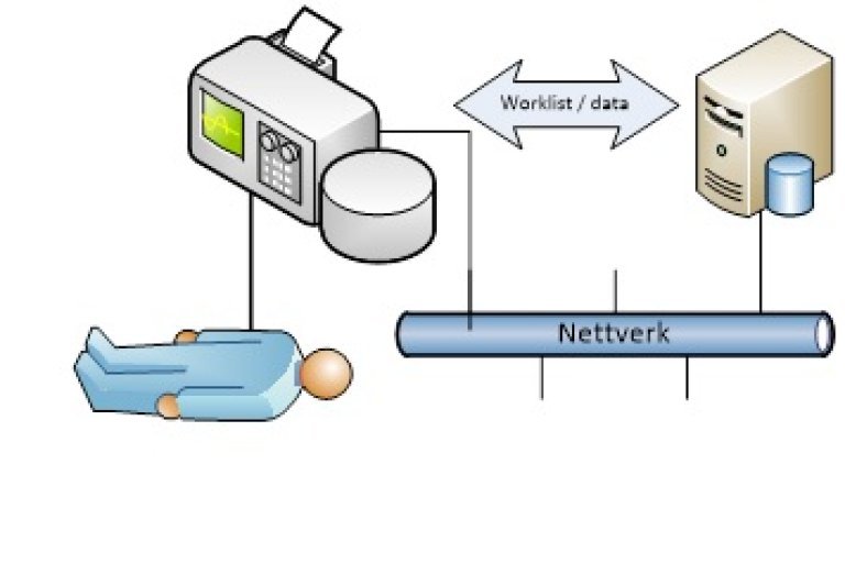 Medisinsk utstyr er integrert med andre systemer, f.eks. PACS/VNA, kurve eller EPJ. Data mottas fra integrerte systemer (f.eks. worklist) og/eller data sendes til integrerte systemer (for eksempel bilder, rapporter osv.)