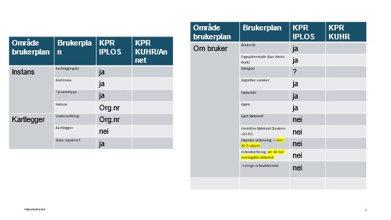 Vedlegg 2: Sammenligning av variable i Brukerplan og KPR