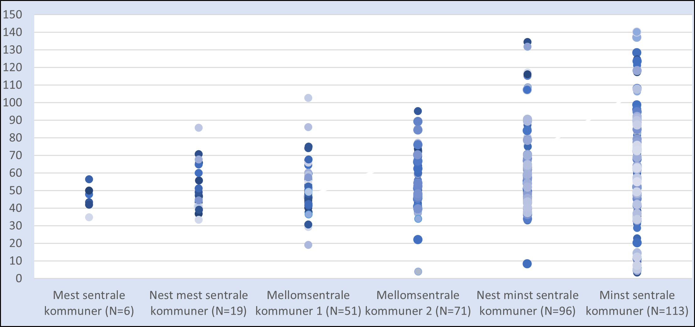 * Tre kommuner i gruppen "Minst sentrale kommuner" er utelatt grunnet ekstremverdier.