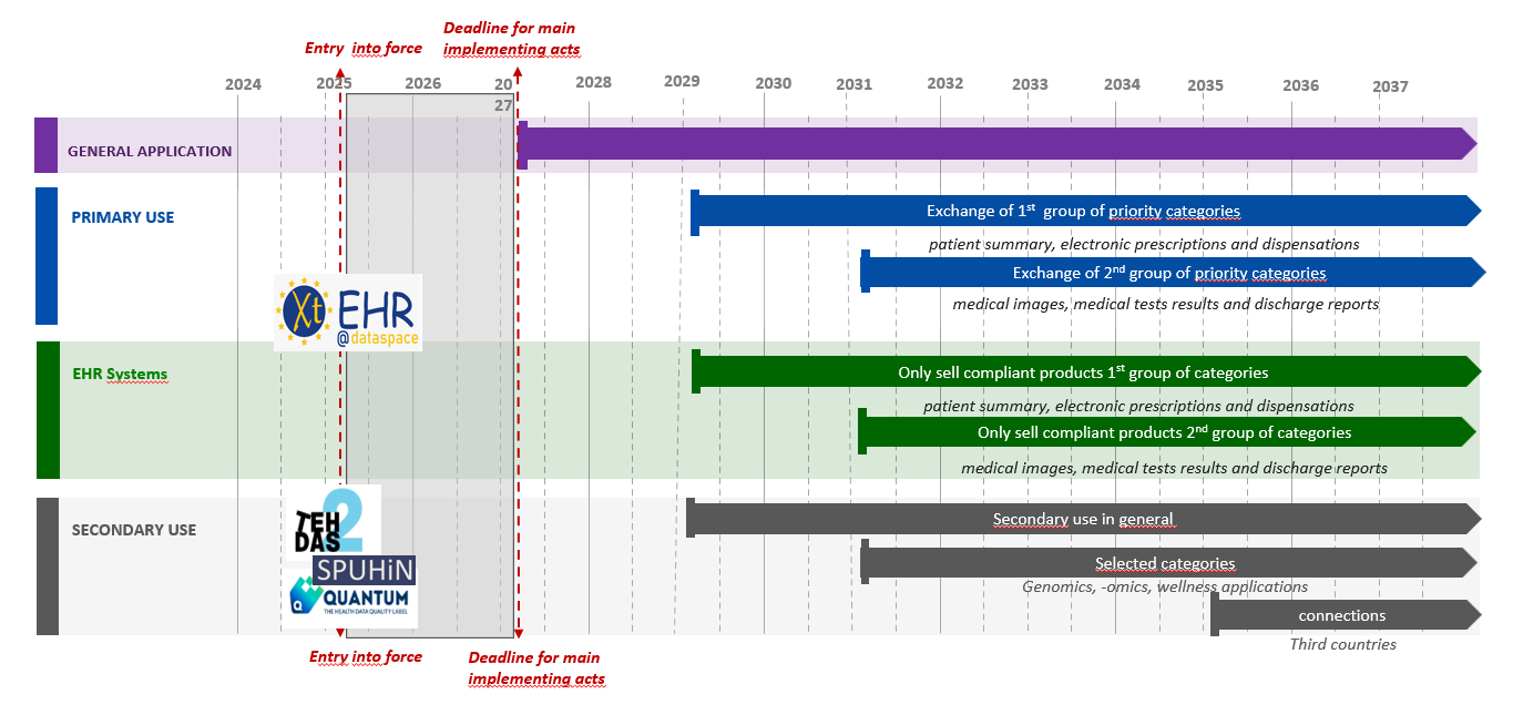 - Mars 2029–mars 2031: Trinnvis innføring av krav på primærbruk av helseopplysninger og sekundærbruk av helsedata samt krav til EHR-systemer.