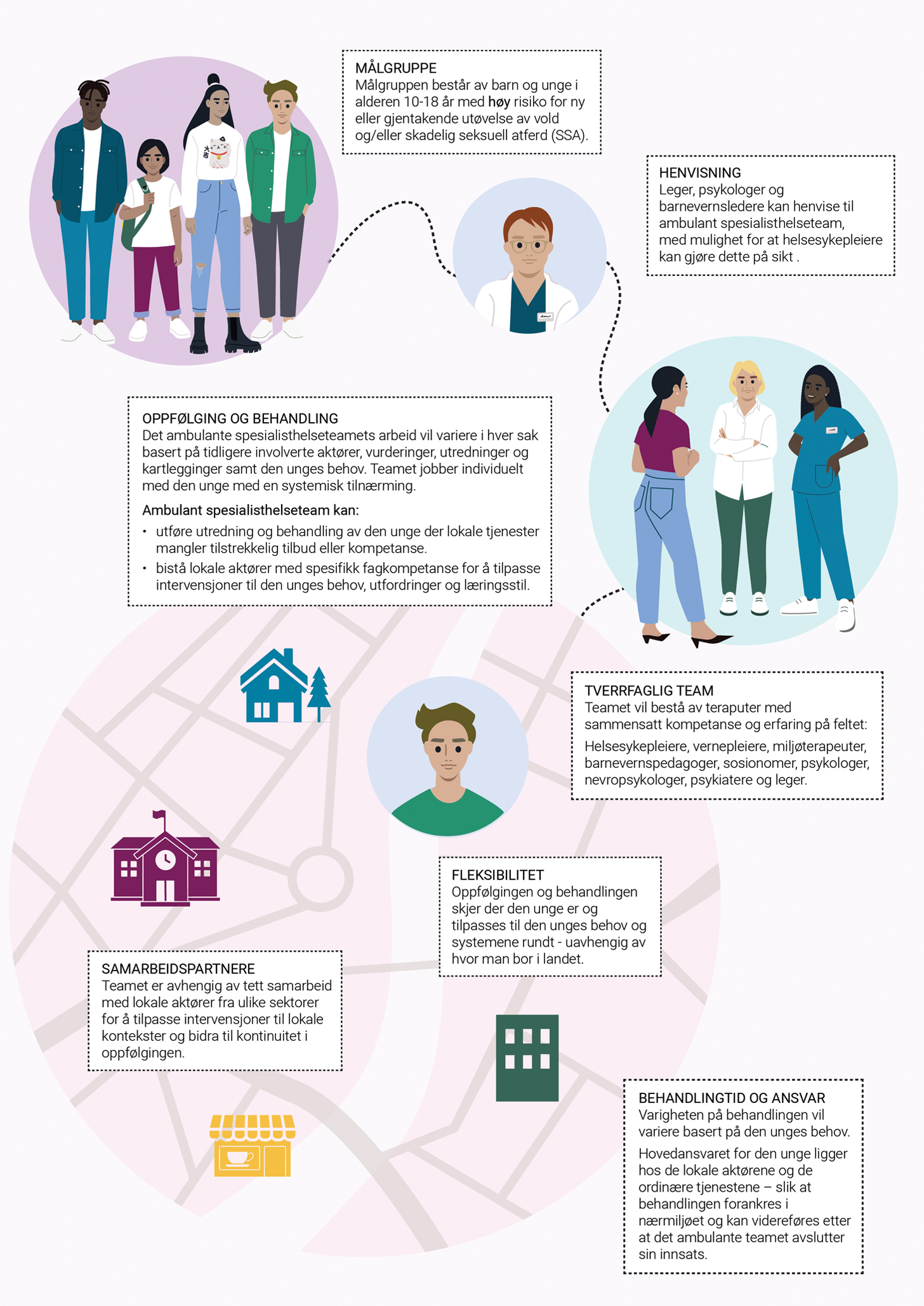 Basert på innspillsrunder og dialog med tjenestene oppfatter Helsedirektoratet at det er bred faglig enighet om at det vil være behov for å både styrke de eksisterende tjenestene og pilotere et spesialisert behandlingstilbud til unge med høy risiko. Dette for å skape et helhetlig oppfølgings- og behandlingstilbud til barn og unge i risiko for å skade andre.