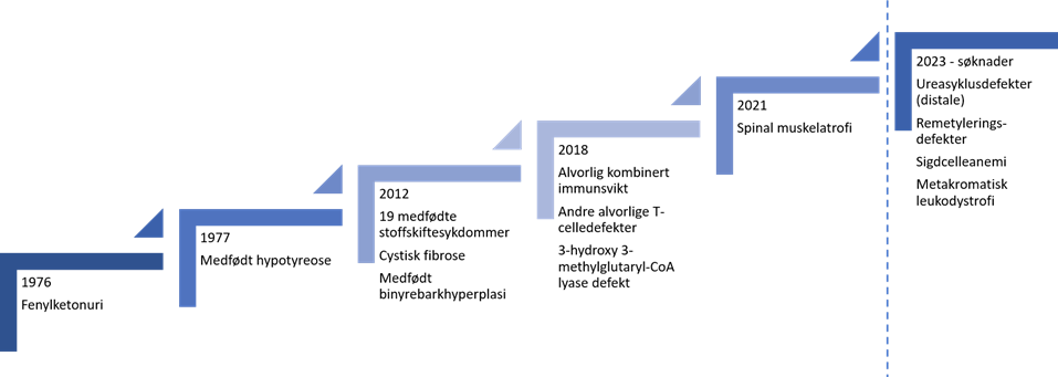 Inkludering av nye tilstander i nyfødtscreeningen har skjedd gradvis, se også 7.1.