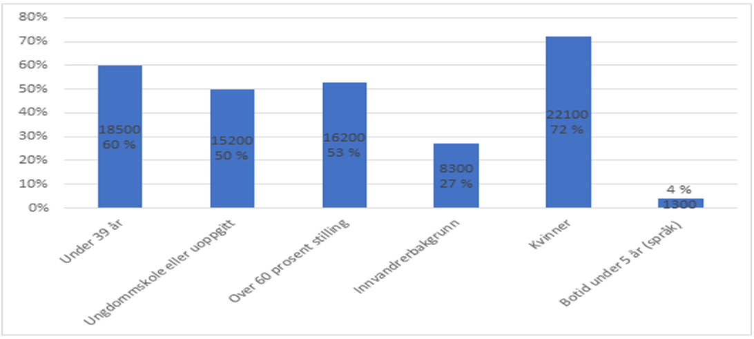 Figur 1 viser kjennetegn ved personellet i målgruppen for kvalifisering i denne rapporten.