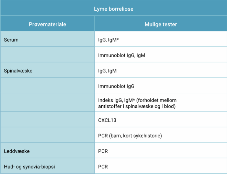 Borrelia-antistoffer av typen IgG og IgM blir vanligvis analysert ved ELISA-metode (Enzyme-Linked Immunosorbent Assay)