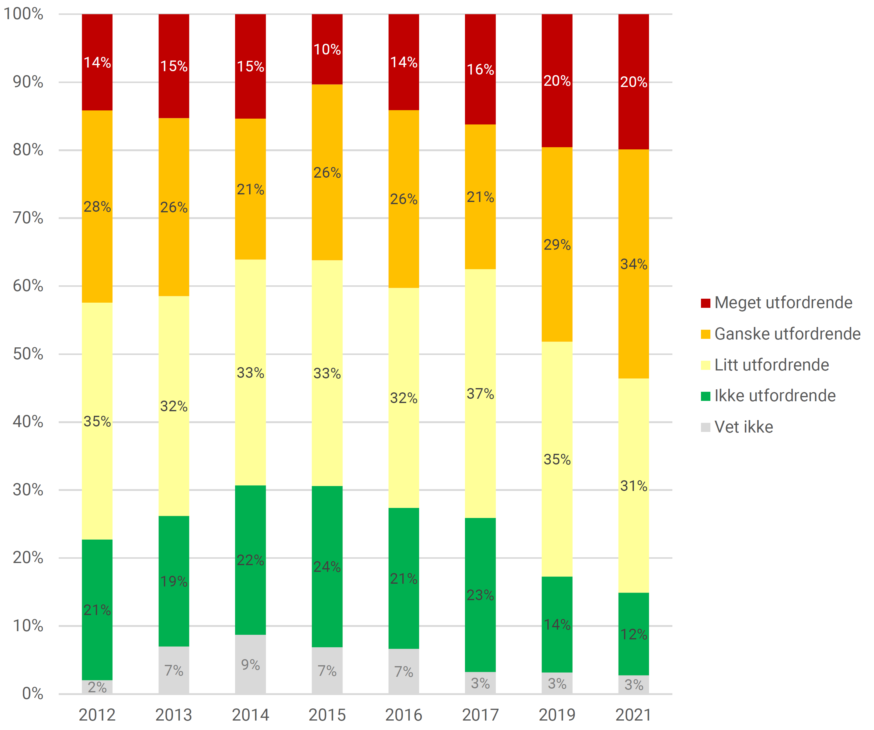 | Meget utfordrende | 28 | 35 | 37 | 24 | 34 | 35 | 43 | 36 |