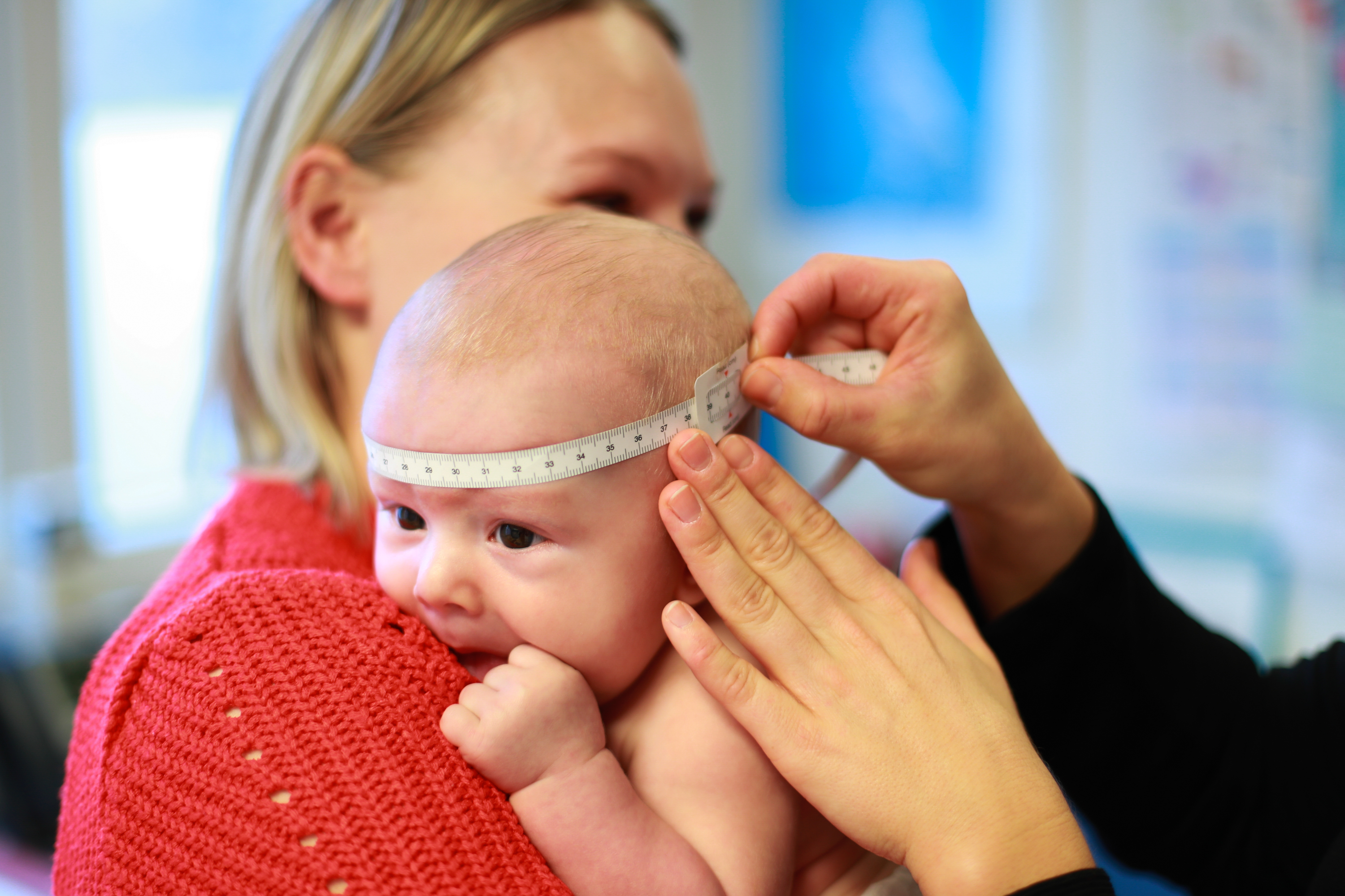 Første gang barnet veies av helsesykepleier ved helsestasjonen er ved hjemmebesøk 7-10 dager etter fødsel. Måling av lengde gjøres ved fødsel og deretter fra tre måneders alder. Frem til denne alderen er det barnets vekt som er av betydning for å vurdere utviklingen. Måling av lengde frem til tre måneders alder kan bli unøyaktig, og har relativt liten verdi.