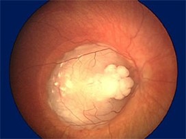Endofytisk: Vokser fra netthinneoverflaten og inn mot eller inn i glasslegemet. Tumorens overflate er oppblåst og dårlig avgrenset med atypiske kar (figur 1).