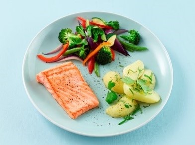 Fisk og sjømat er gode kilder til omega-3-fettsyrer, vitamin D, selen og jod. Server både mager fisk (som torsk og sei) og fet fisk (som laks, ørret og makrell). Både fryst og fersk fisk, fiskeprodukter og sjømat kan benyttes.